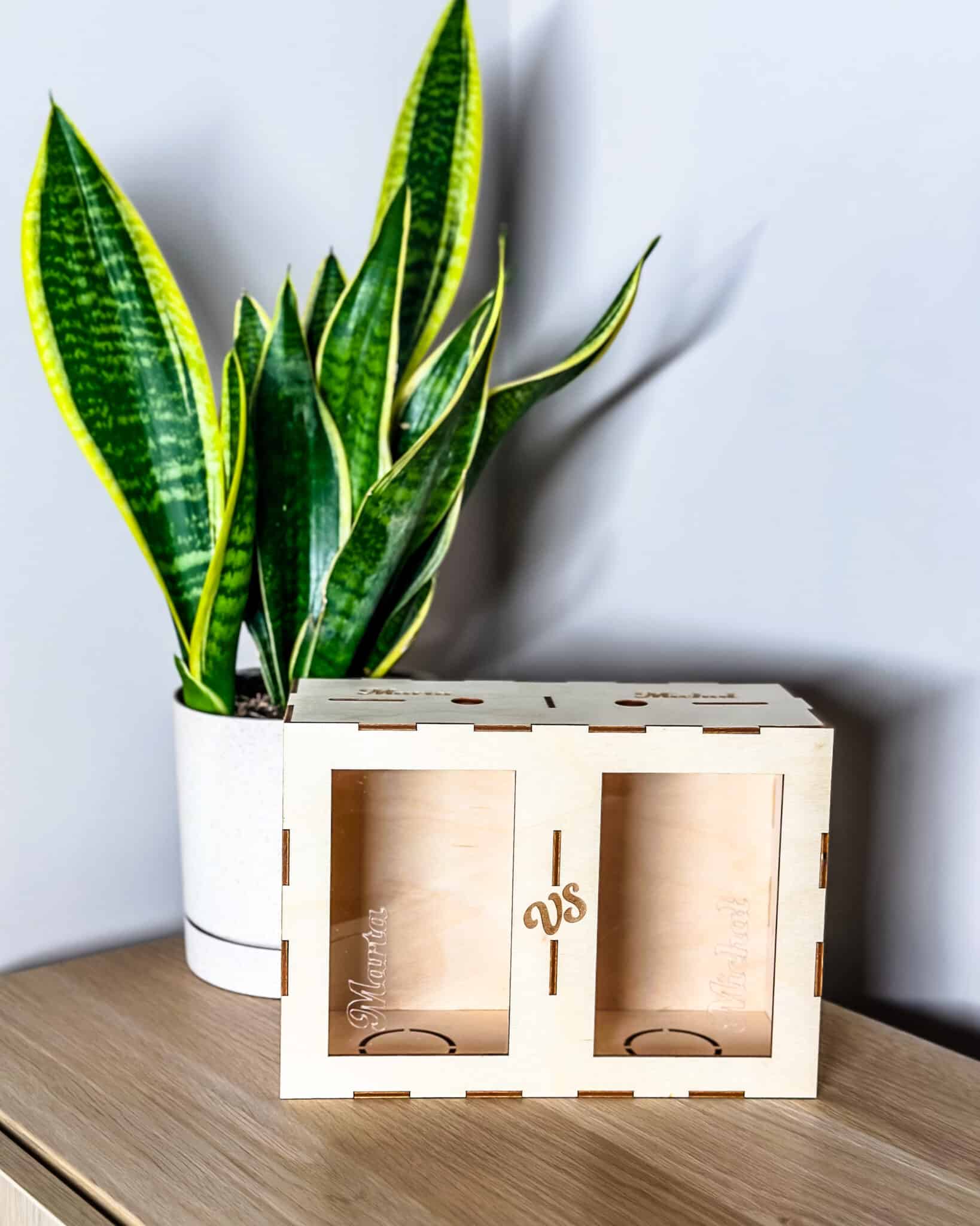 X vs Y Money Box | Personalised Two-Sided Wooden Money Box